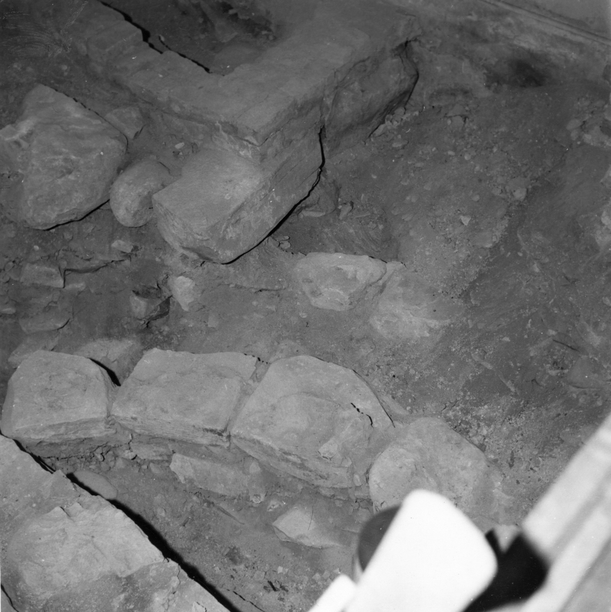 Titel: Valbo Kyrka, Grundmur till absiden, Undersökning hösten 1955