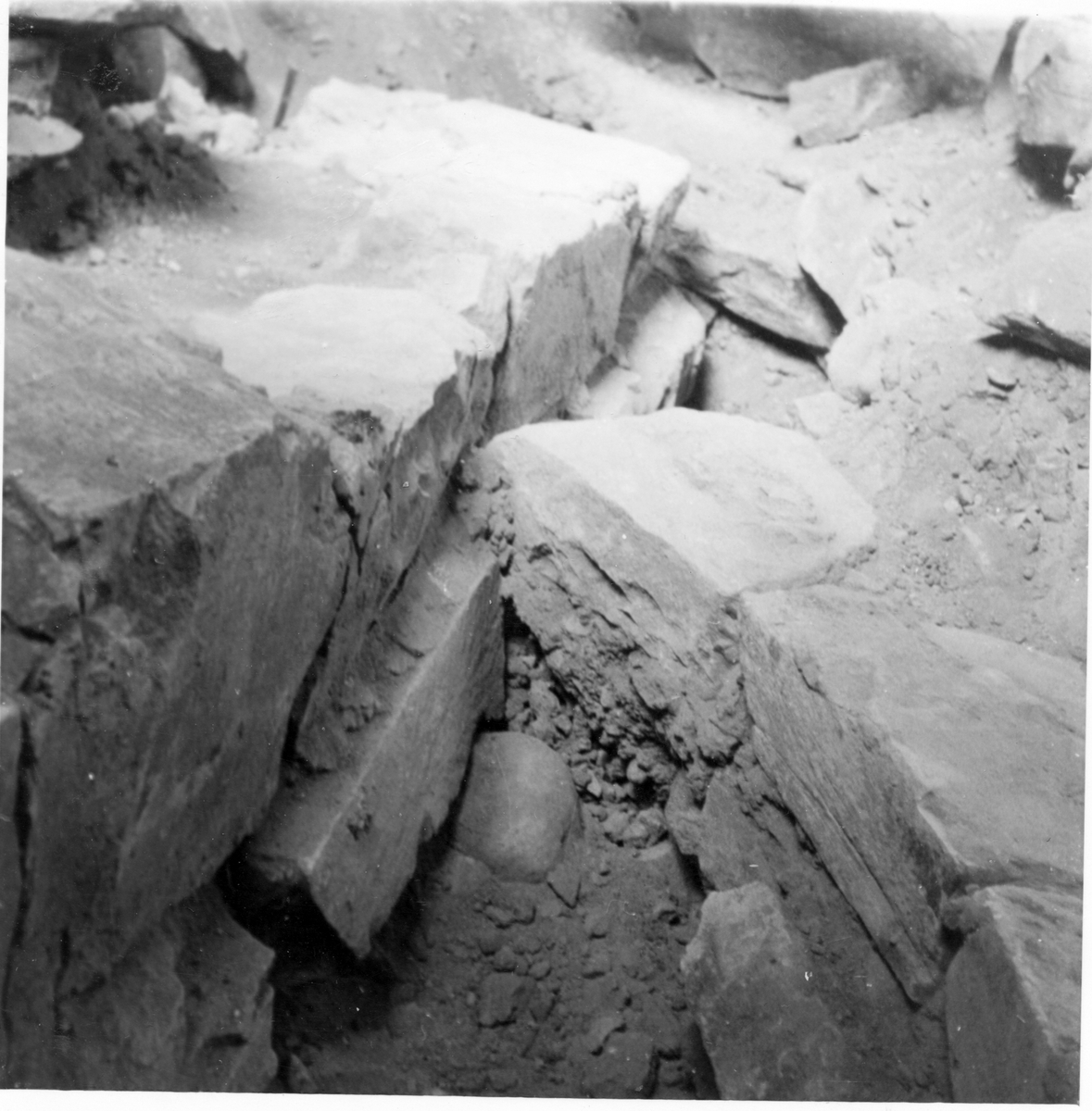 Absidgrundmurens norra anslutning till den romanska korgrunden