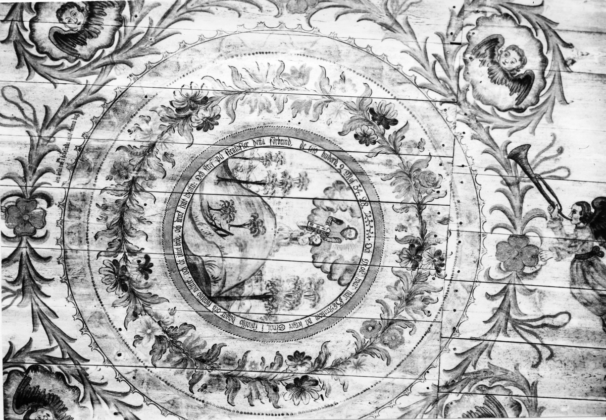 Titel: Hedesunda. Takmålning från Nystugan, Lindåsen. Målat av Hans Wikström. (Allmogekonst/Hans Wikström).