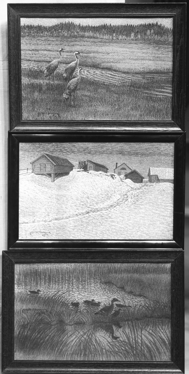 Tre tavlor målade av Andreas Hanson år 1917 - 18.