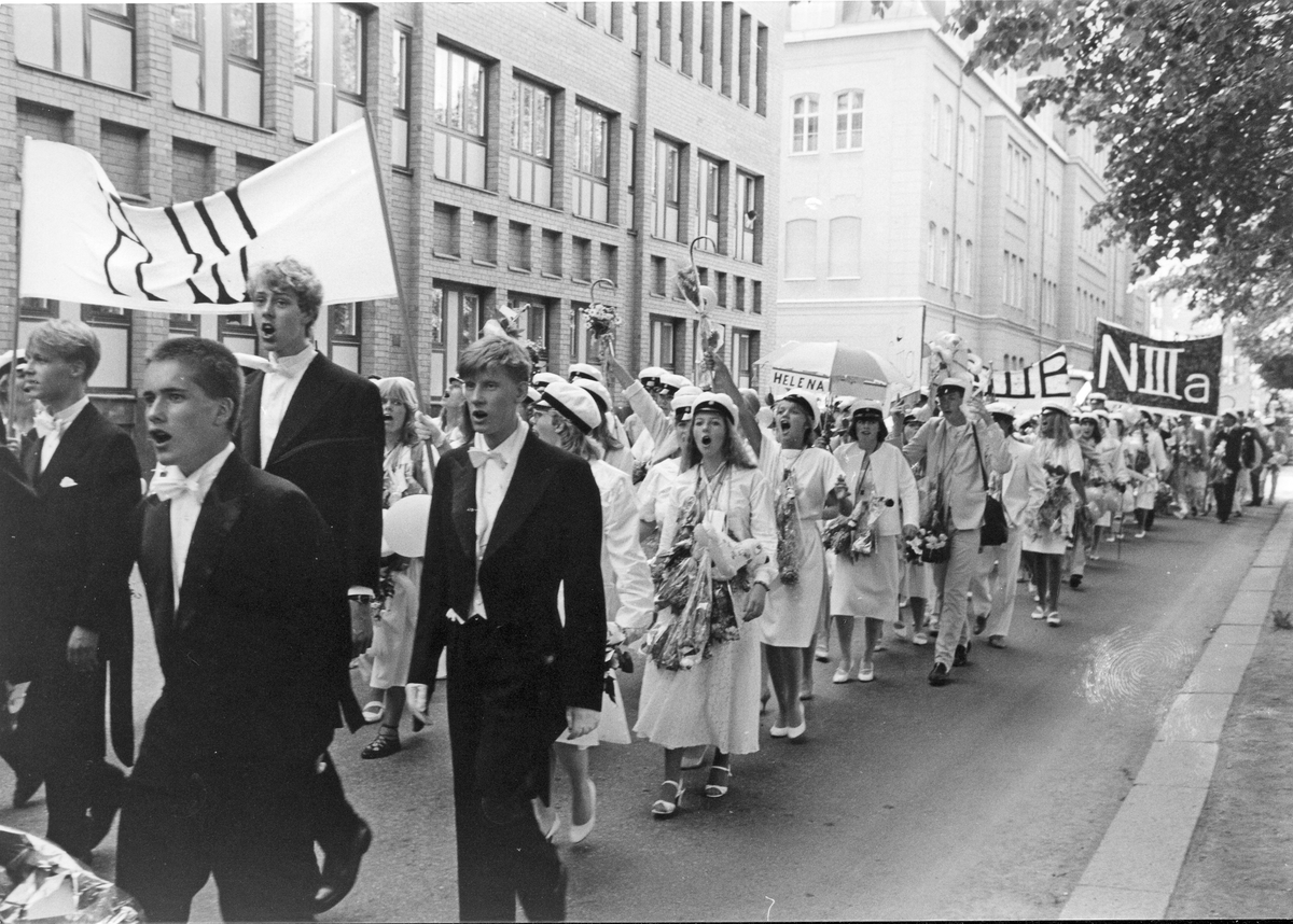 Studentparad från Vasaskolan, Gävle, 1980-tal.