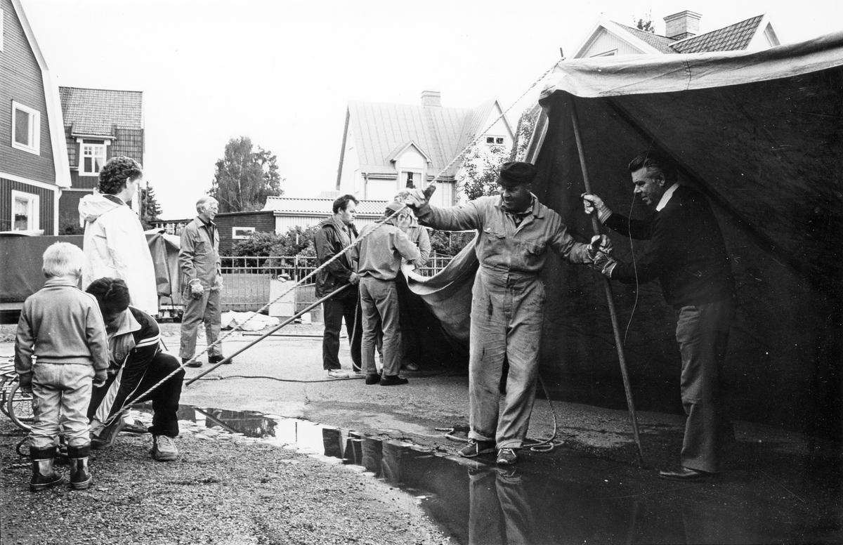 Tältresning på södra Centralgatan Gävle. Jubileumsfirande.
