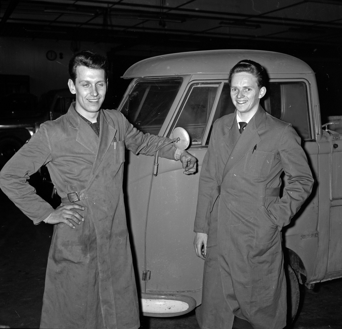 Bil & Buss i Gävle, verkstadspersonal framför en liten lastbil