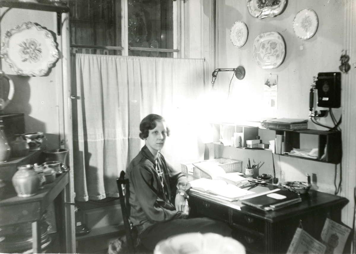 Fru Haglund med keramik från Bo Fajans på Nederlaget, Västerlånggatan, Stockholm.