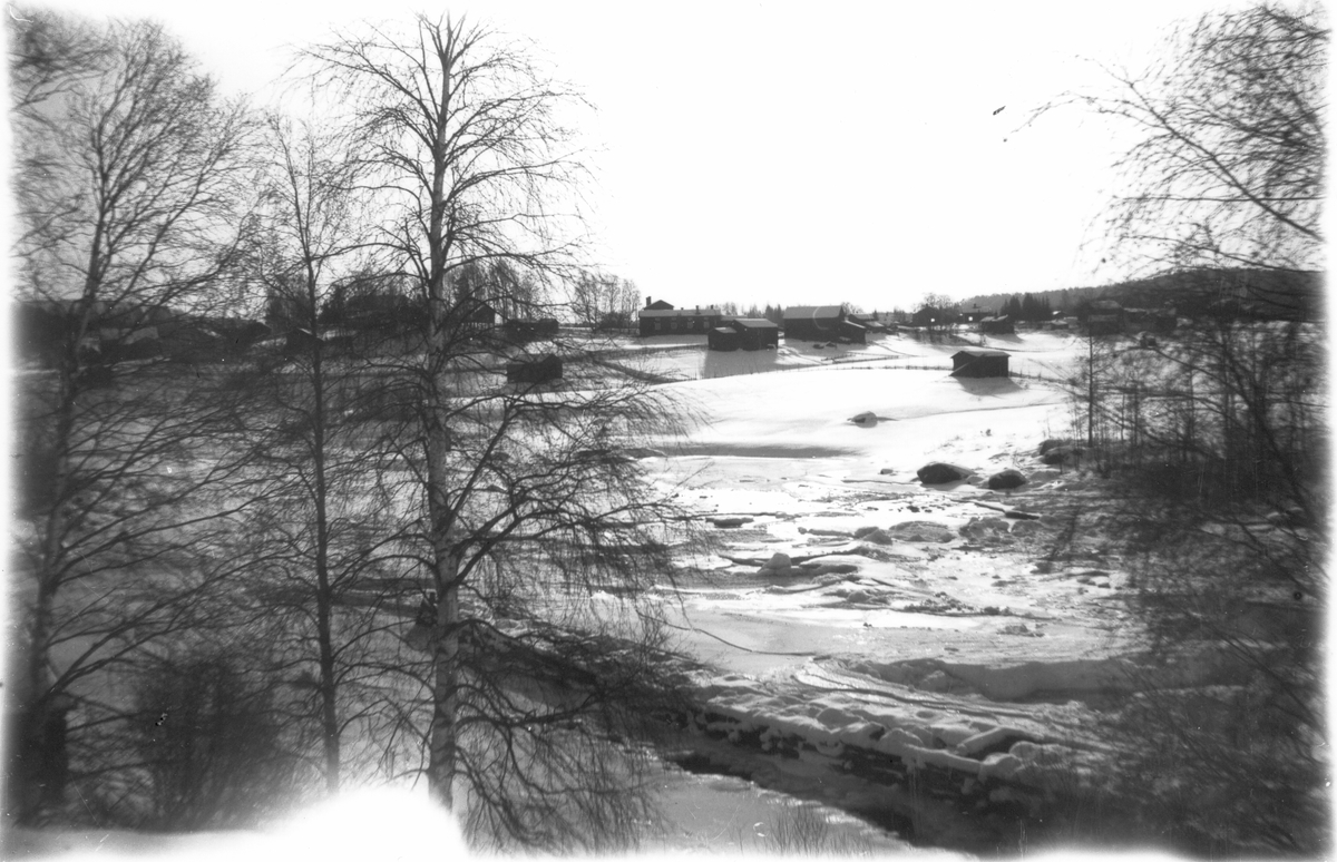 Motljus-vy över Voxna älv med Per-Jöns i bakgrunden, taget från viken nedom kvarnen.