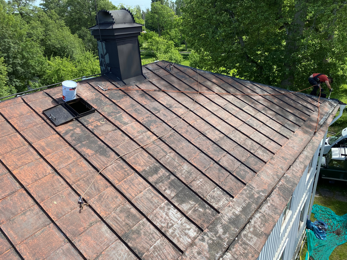 Det falsade plåttaket på Gästrumsflygeln öster om Mackmyra herrgård.