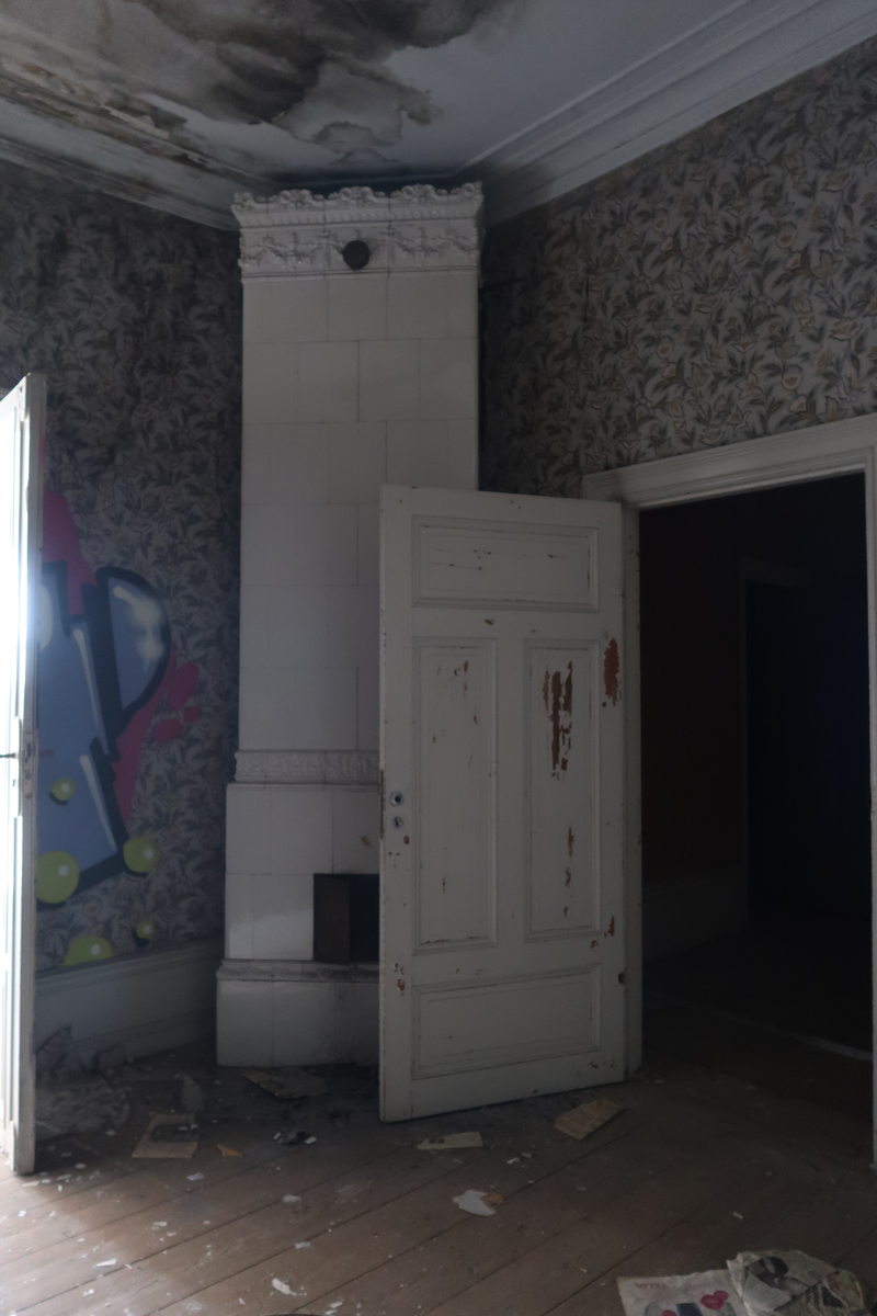 Villa Sjötorp, sommarvilla, kakelugn, tapet.