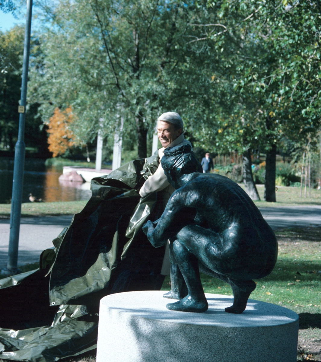 Åke Gillström invigning av staty, Premiär av Torsten Fridh. Stadsparken. Vid ingången från Kvarnparken.
