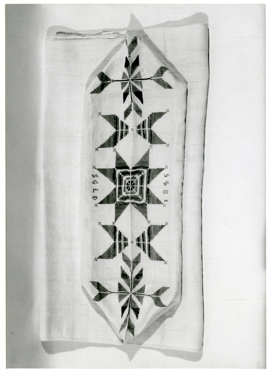 Broderat långörngott från 1845. Hemslöjdsinventering 1979.