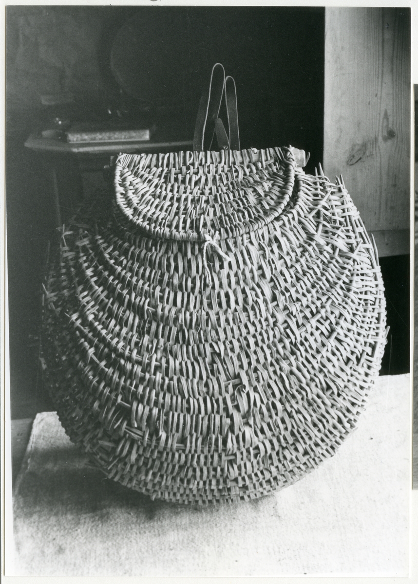 Bärkont flätad av vidjor. Hemslöjdsinventering 1979.