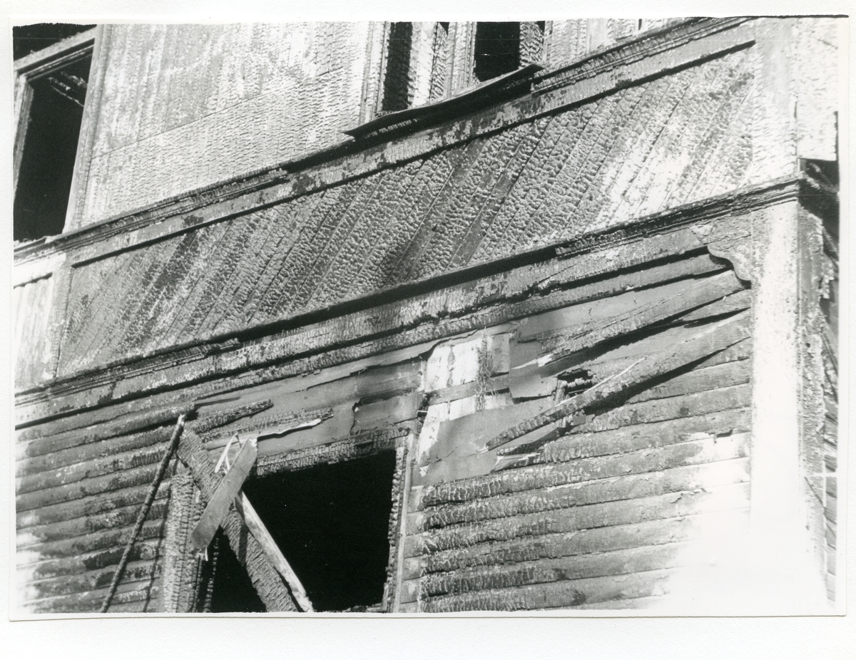 Västerås, Lustigkulla. Del av den brandskadade byggnaden, Lustigkullagatan 5. 1973.