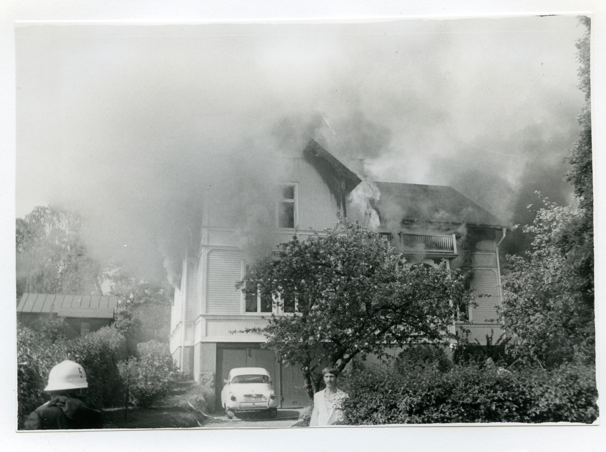 Lustigkulla. Brand i bostadsbyggnad, Lustigkullagatan 5. 6 juni 1973.