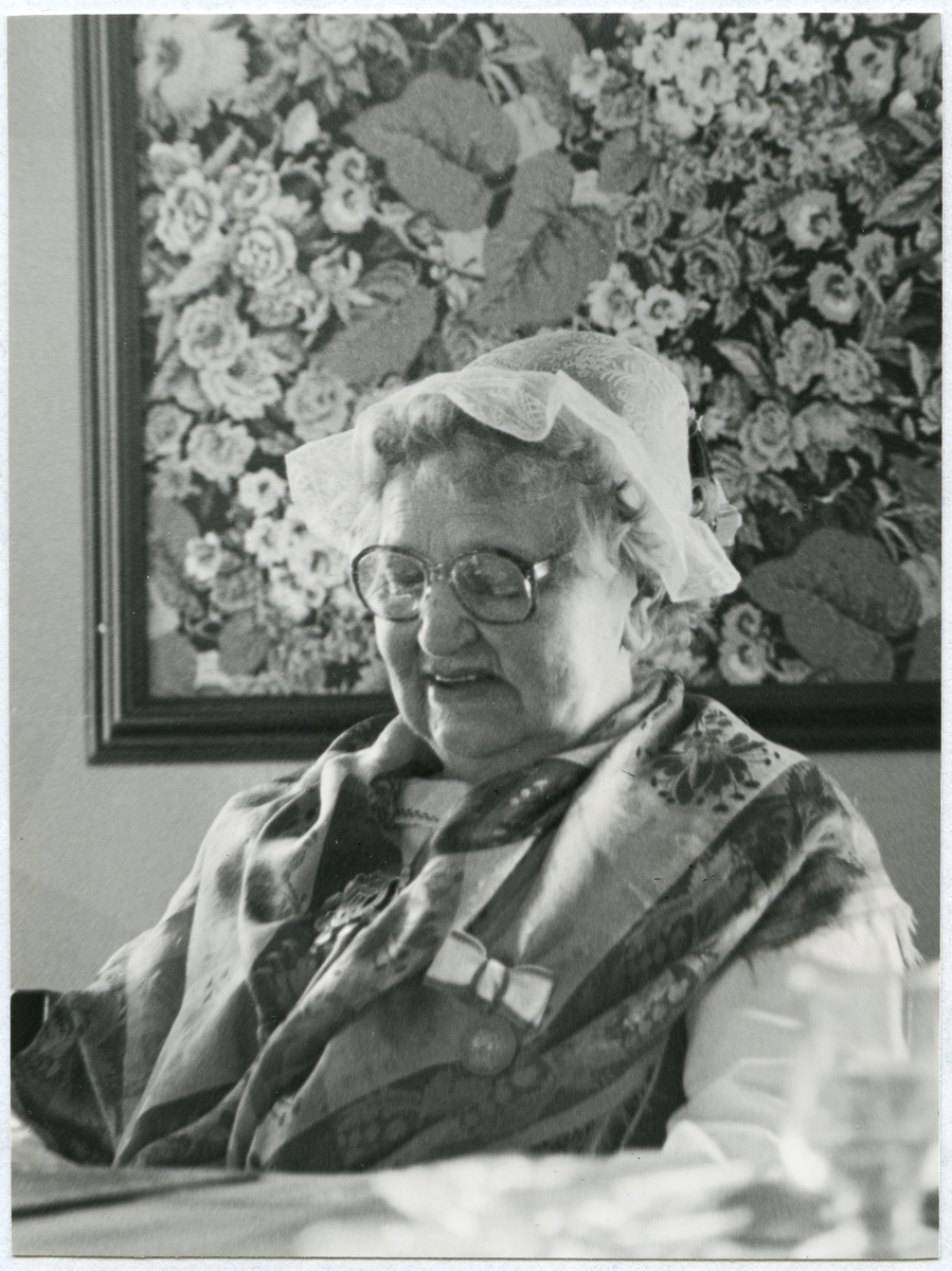 Västmanlands läns hemslöjdsförening. Öppnande av utställningen "100 års hemslöjd i Västmanland" i Länsmuseet 14/5 1980. Elma Danielsson.