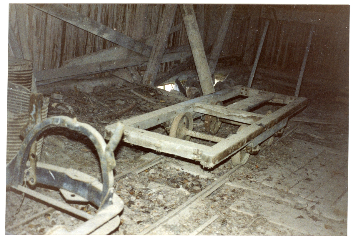 Rönnvikens Kalkbruk. Tippkärra för råsten samt till höger vedkärra på räls.