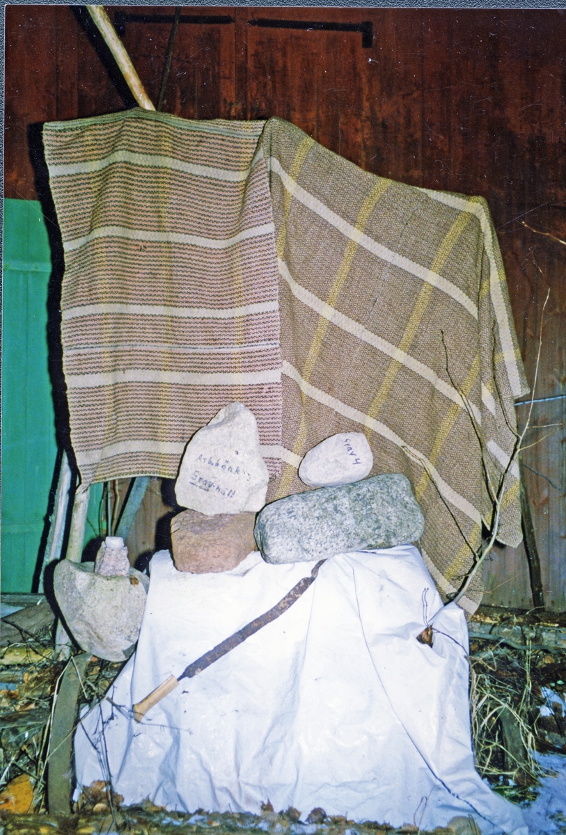 Hemslöjdsföremål - täcke och "mattstump".