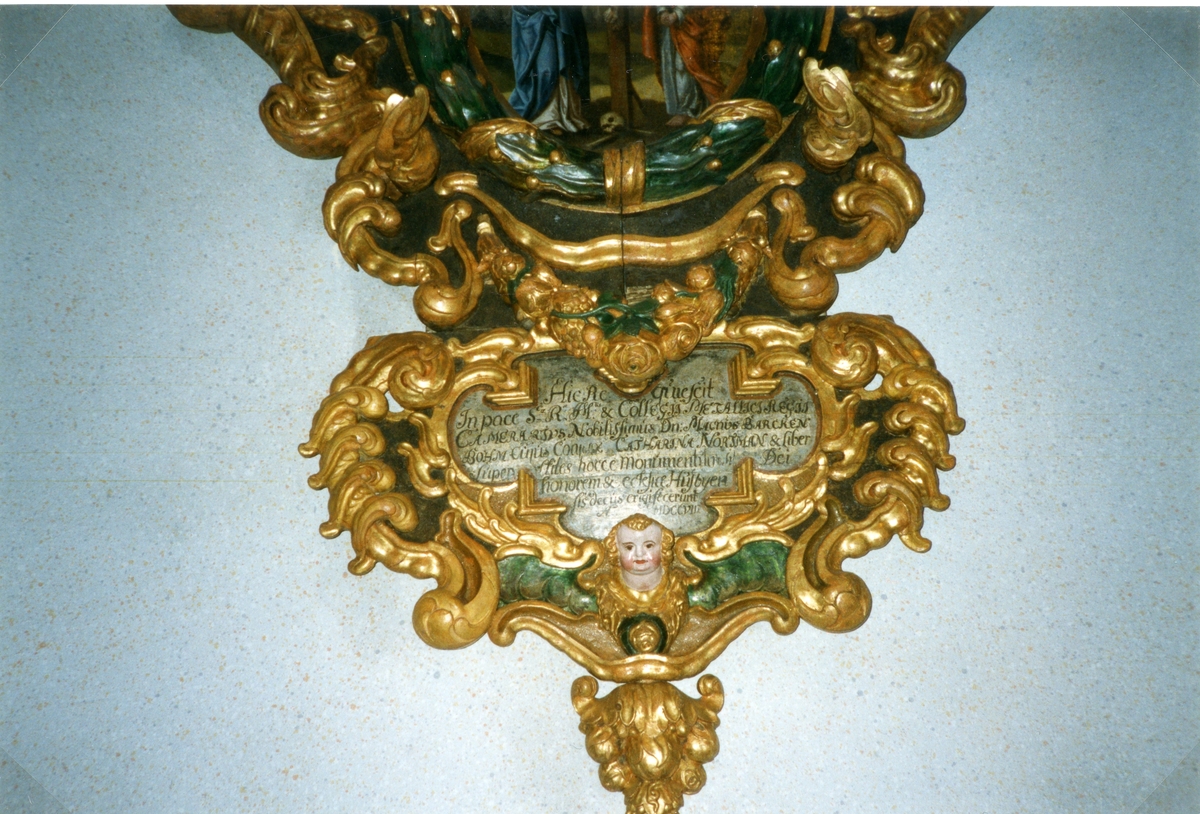 Interiör Karbenning kyrka med detalj av epitafium, 2000.