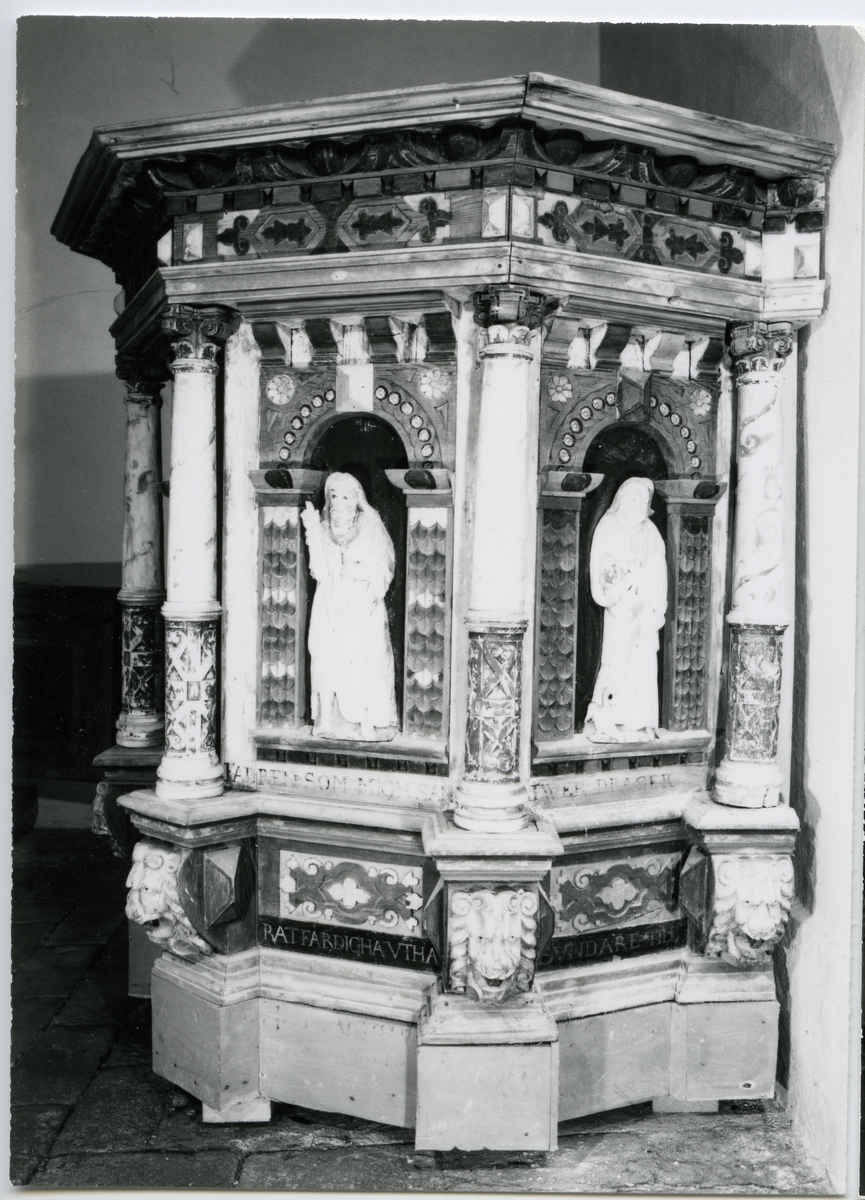 Titel: Irsta sn, Irsta kyrka. Predikstol i Irsta kyrka, 1973.