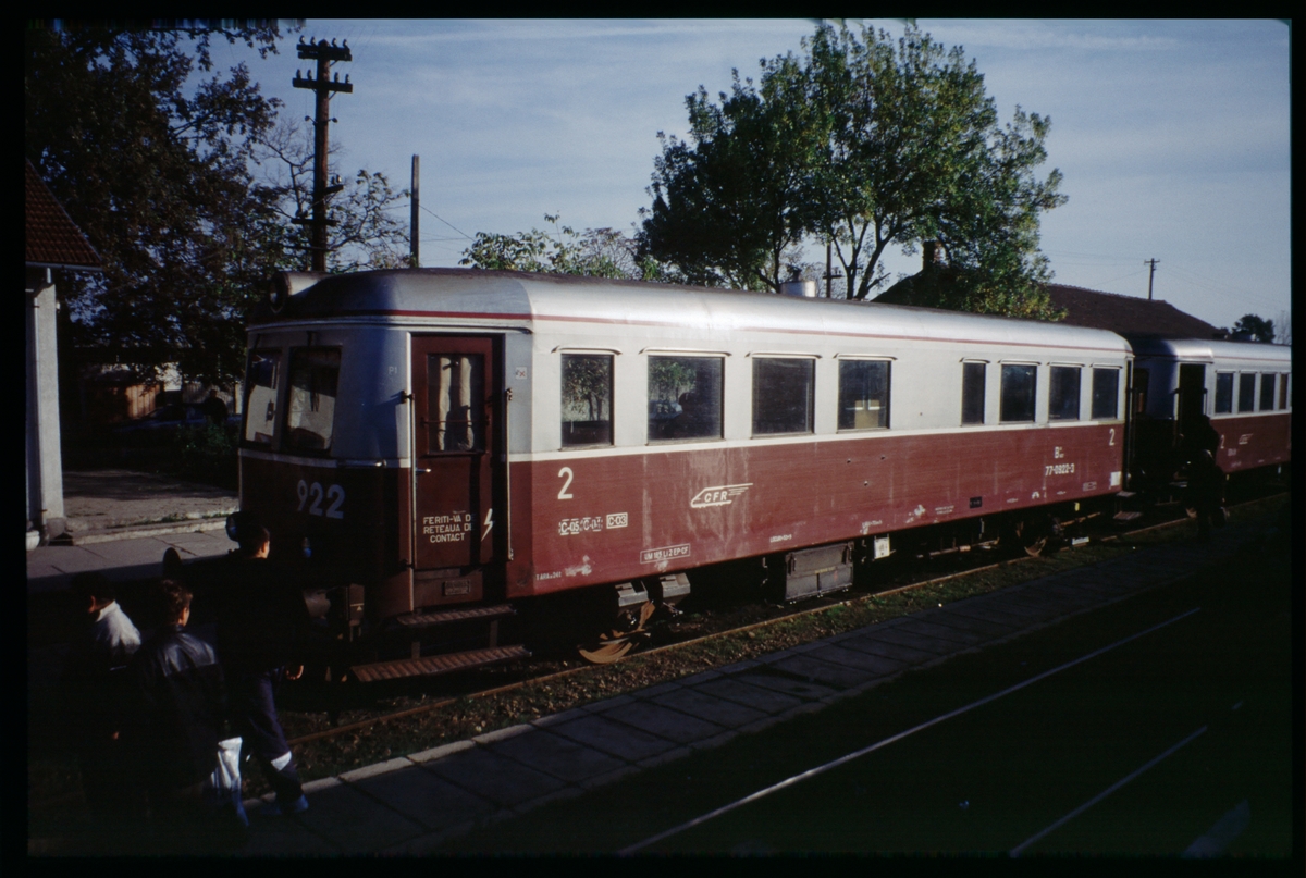 Motorvagn CFR 922 och motorvargnssläp 71 i Gataia, Rumänien.