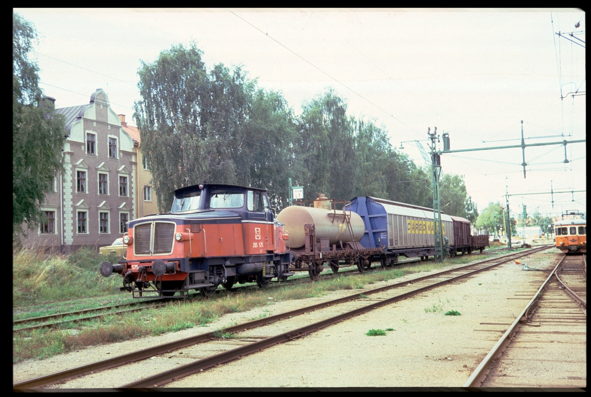 Statens Järnvägar, SJ Z65 575 med godsvagnar på Strängnäs bangård.