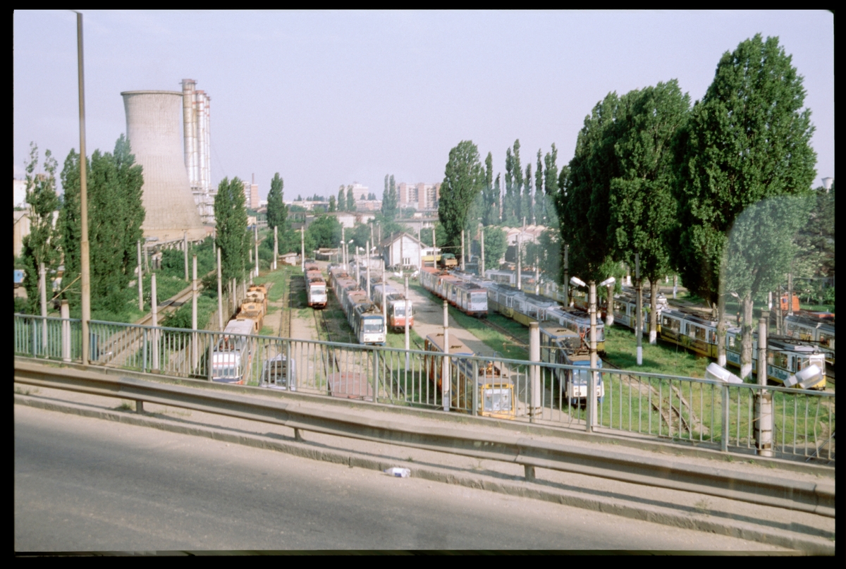 Vy över spårvagnsbangård i Arad, Rumänien.