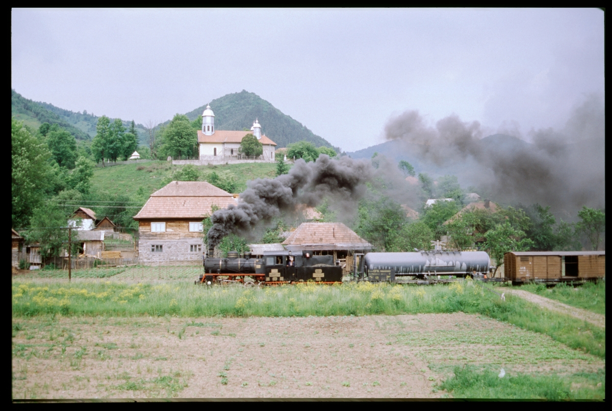 Ånglok 764-052 med godsvagnar, Rumänien.
