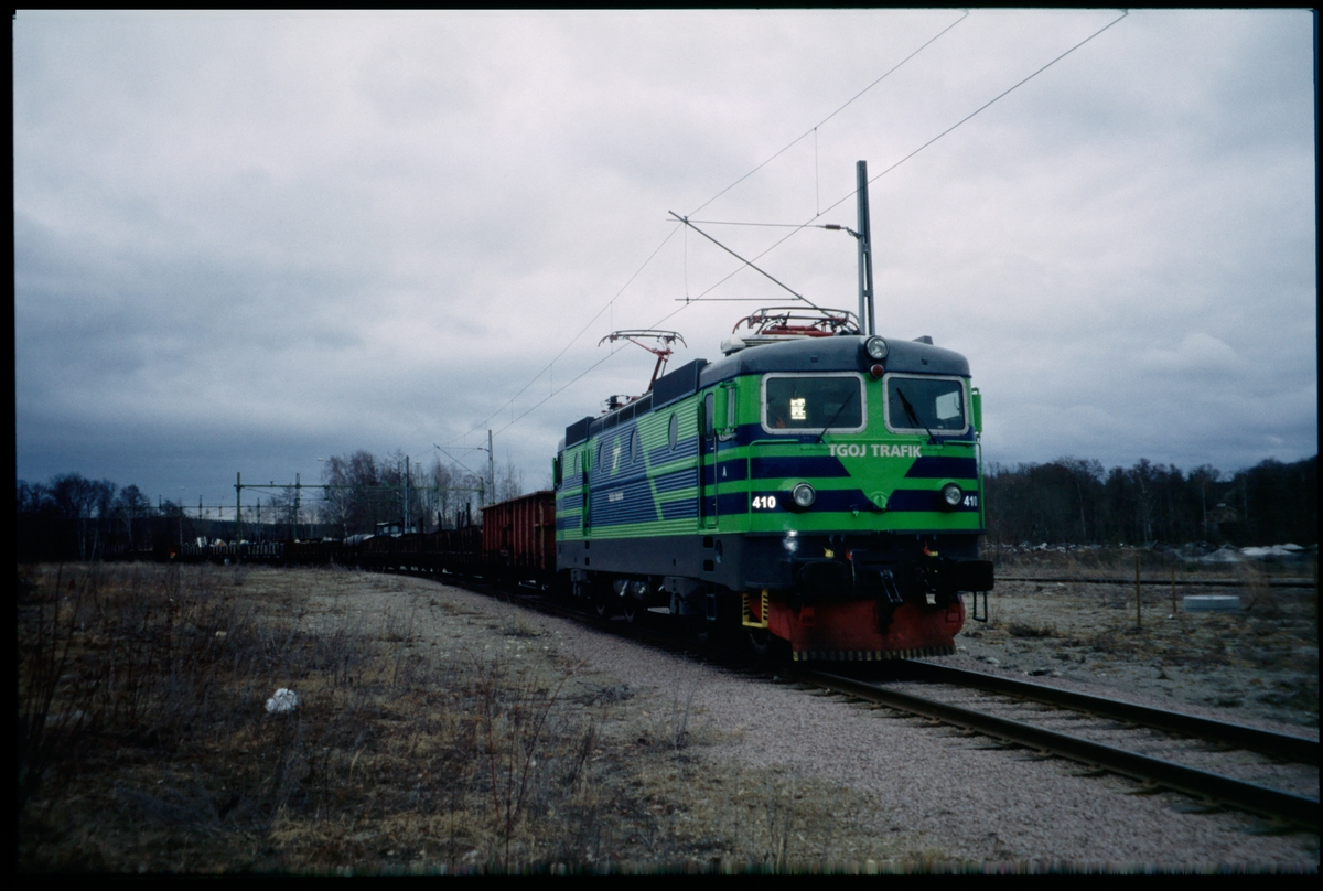 Trafikaktiebolaget GrängesbergOxelösunds Järnvägar, TGOJ Rc2 410 i närheten av Åkers Styckebruk.
