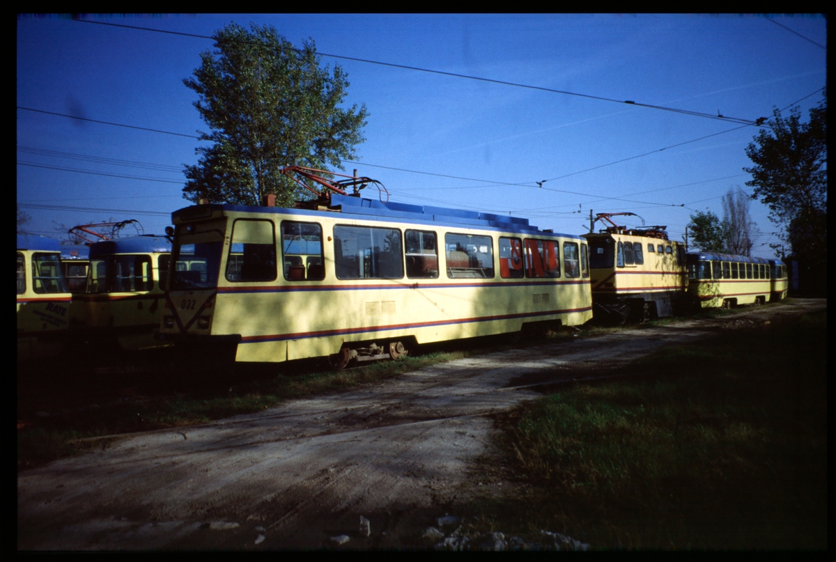 Spårvagnar vid spårvagnsdepån i Craiova, Rumänien.