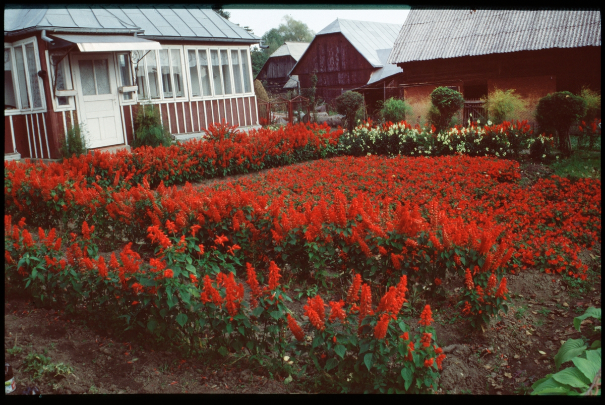 Trädgård vid bostadshus, Putna, Rumänien.