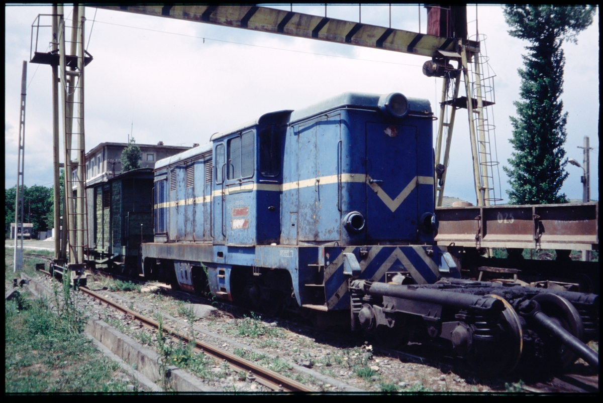 Diesellok L45H med borttagen nummerkskylt utanför verkstaden i Govora, Rumänien.