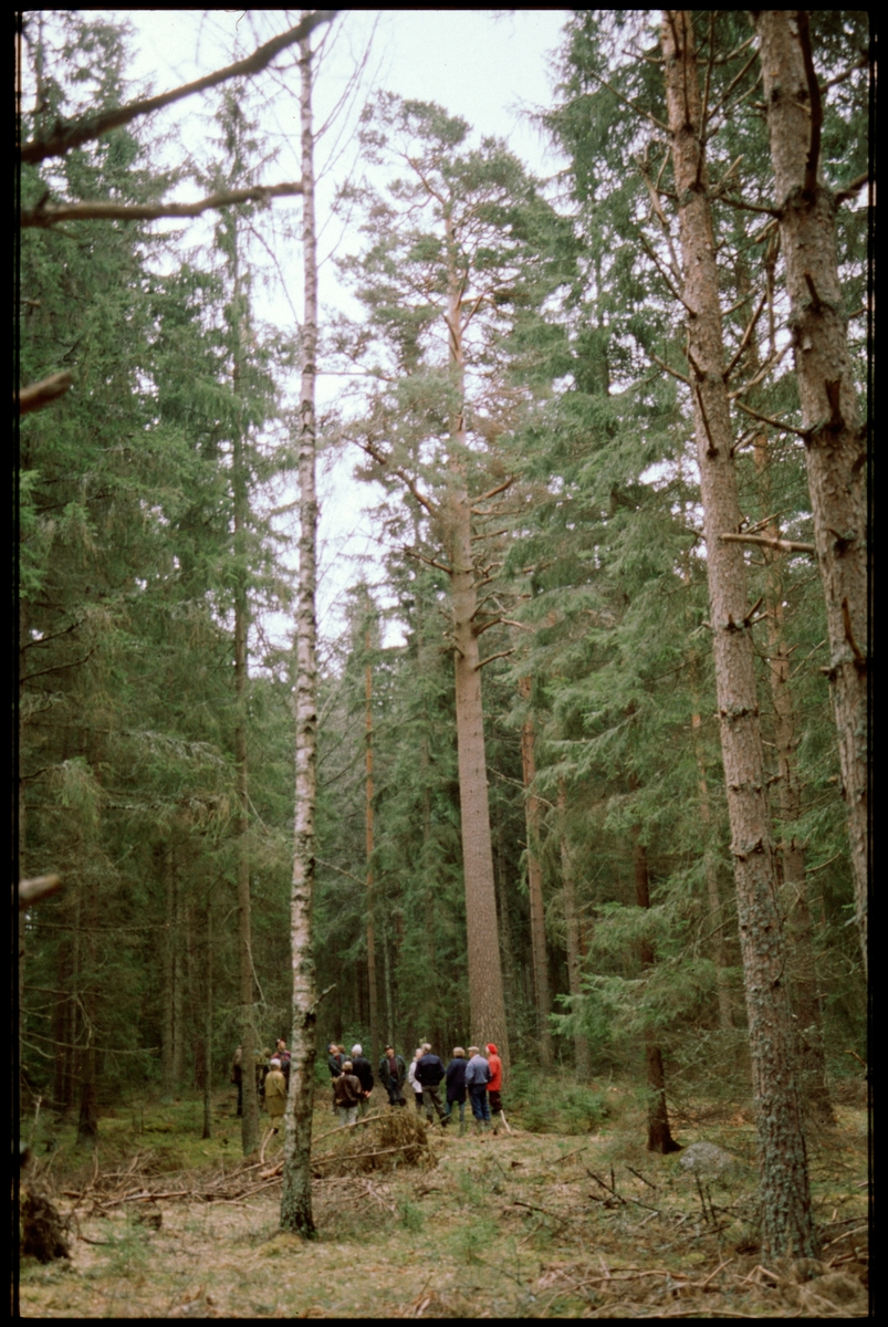 Lännas hembygdsförening vid en stor tall i Haglida.