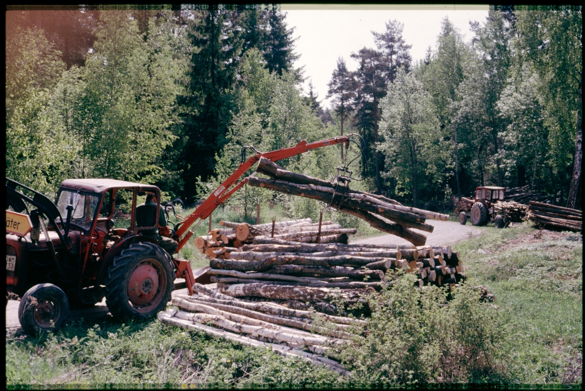 Skogsbruk, lastning av timmer vid Stensätter, öster om Lännasjön.