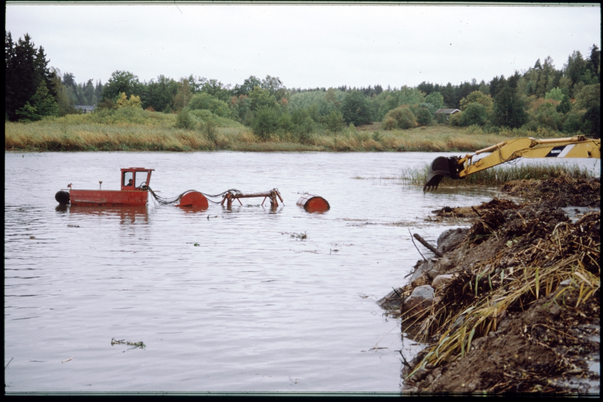 Liten fraktbåt i Lännasjön vid Stensätter.