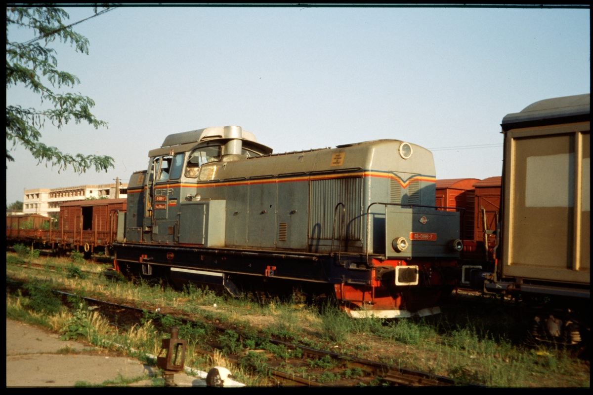 Diesellok på bangården i Cotroceni, Bukarest, Rumänien.