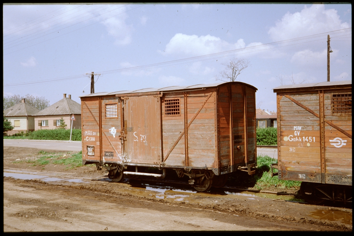 Godsvagnar på bangården i Kapuvár, Ungern. Magyar Államvasutak, MÁV G 1388 och MÁV Gahk 1451.