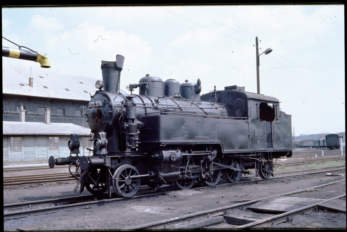 Ånglok på bangården i Kaposvár, Ungern. Magyar Államvasutak, MÁV lok 375.576.