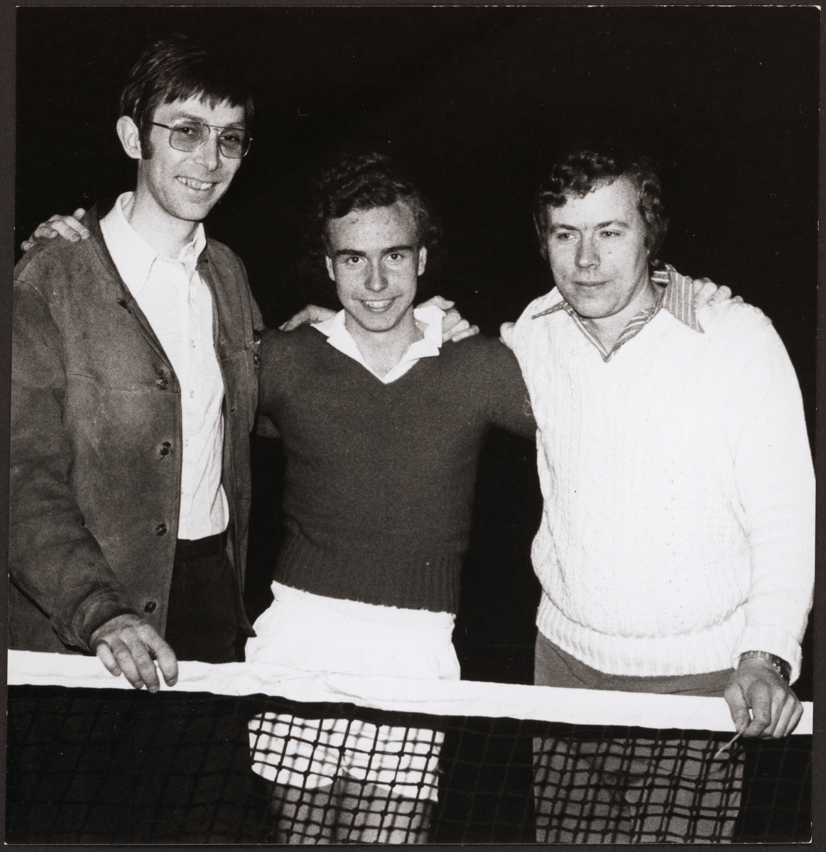 Från vänster: Roland Thörnqvist, Inge Svensson och Bert Johansson. Gruppsegrare i en tennisturnering.