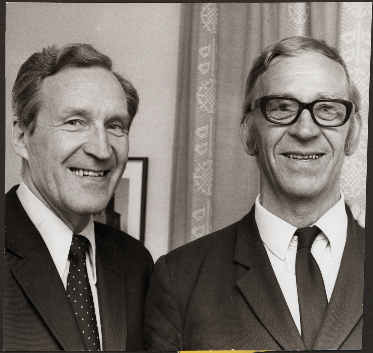 Bowlingspelare Bernhard Klangefors till vänster och Erik Bergström blev svenska bowlingmästare i oldboysklassen för tvåmannalag vid SM-tävlingar i Stockholm 1975.