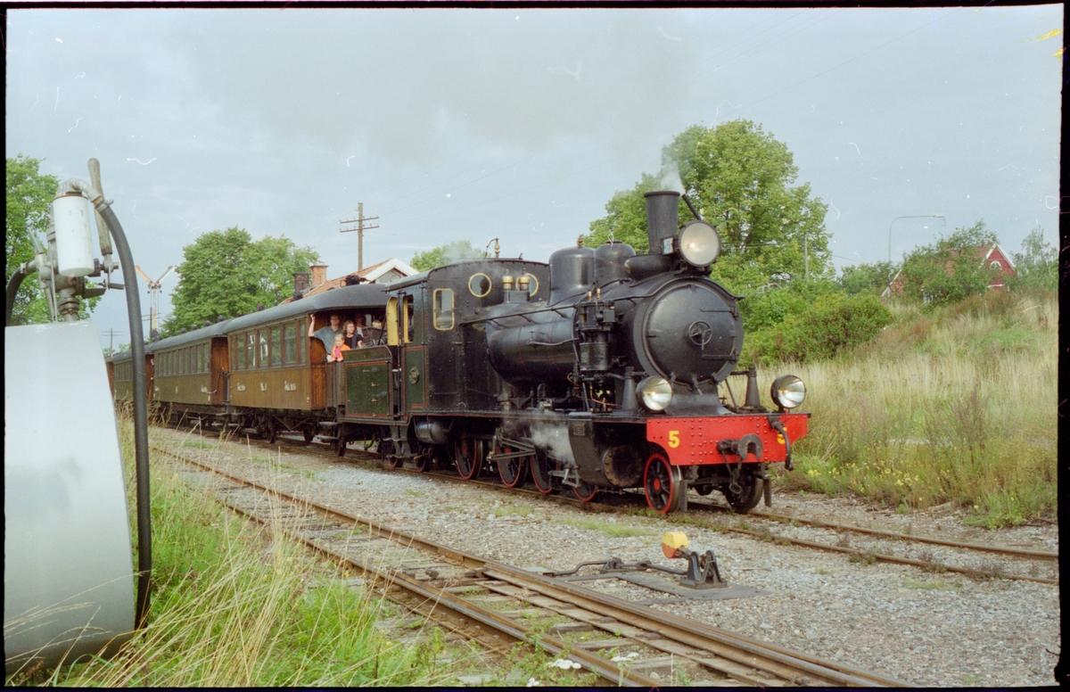 Titel: Byvalla - Långshyttans Järnväg, BLJ lok 5 "Thor" vid Bärby station.