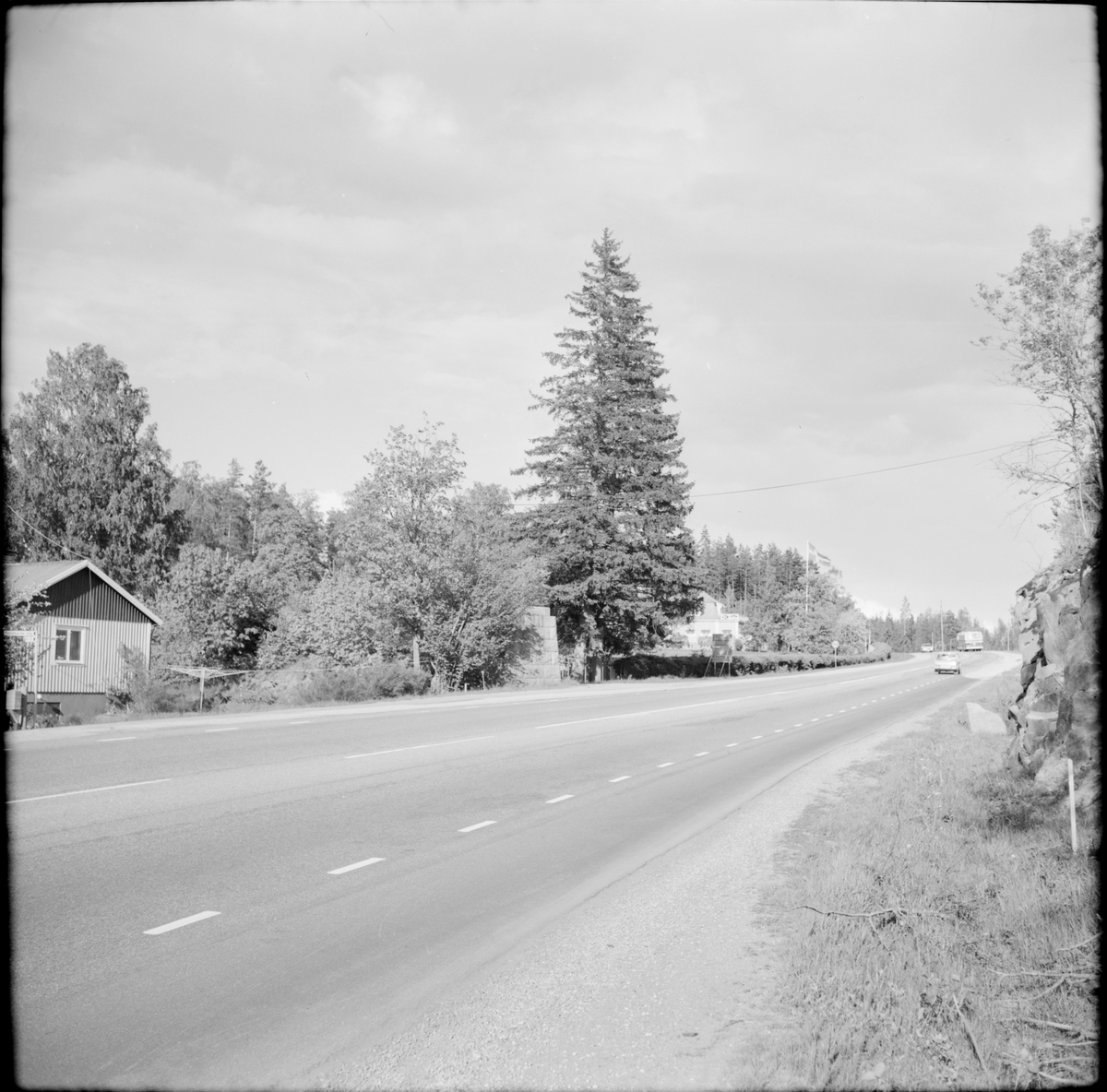Del av järnvägsbro skymtar strax norr om Stavsjö Bruk på Nyköpingsvägen strax innan Tintomaravägen i Stavsjö mellan Nyköping och Norrköping.