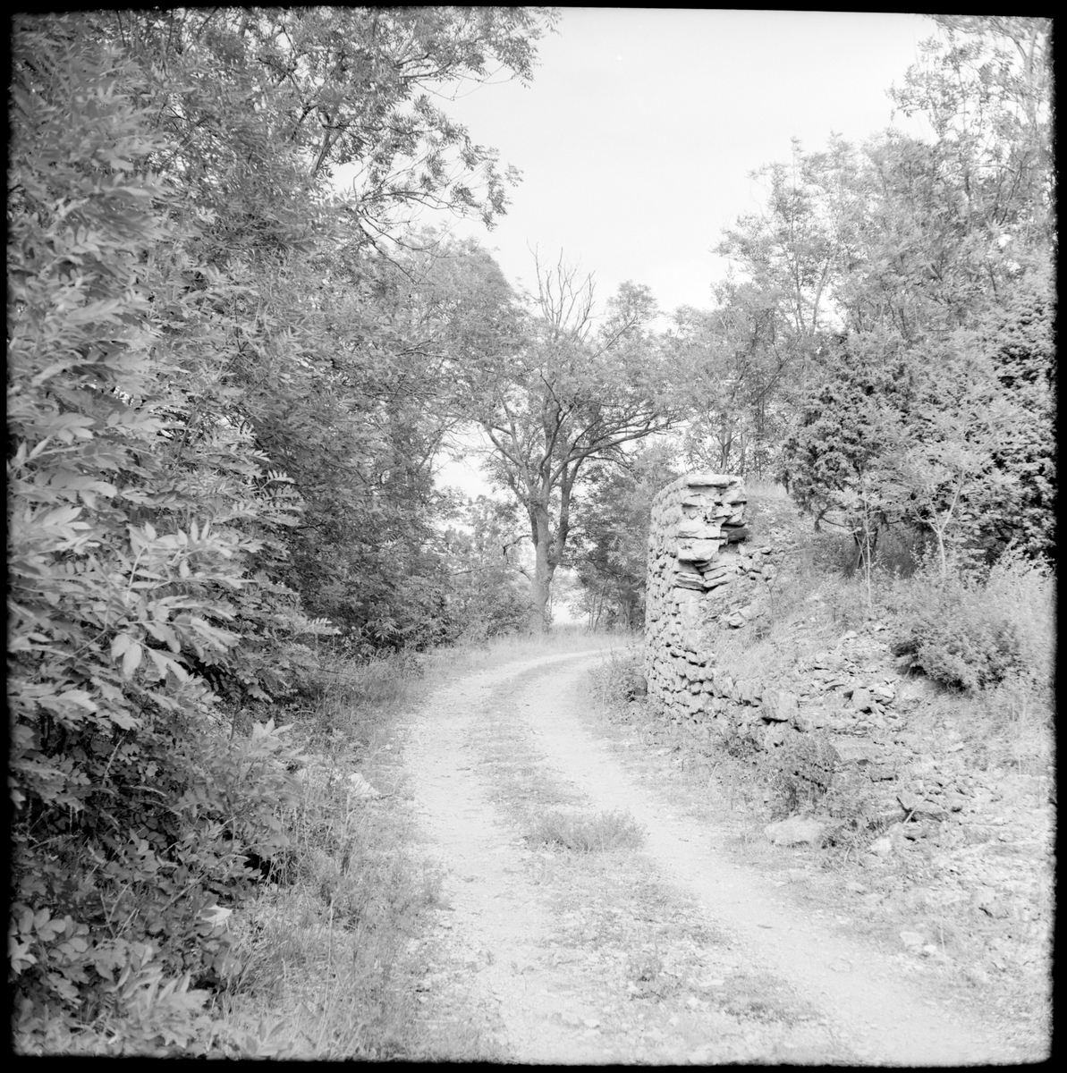 Stenmur vid vägrenen vid S:t Olofsholm som ligger på östra delen av en halvö i Hellvi socken på nordöstra Gotland.