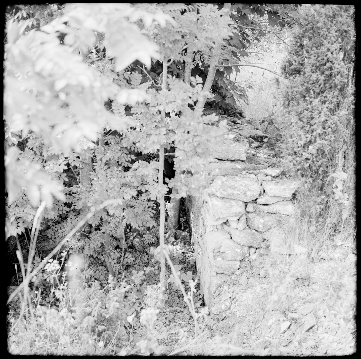 Stenmur vid rönnen i S:t Olofsholm som ligger på nordöstra Gotland.