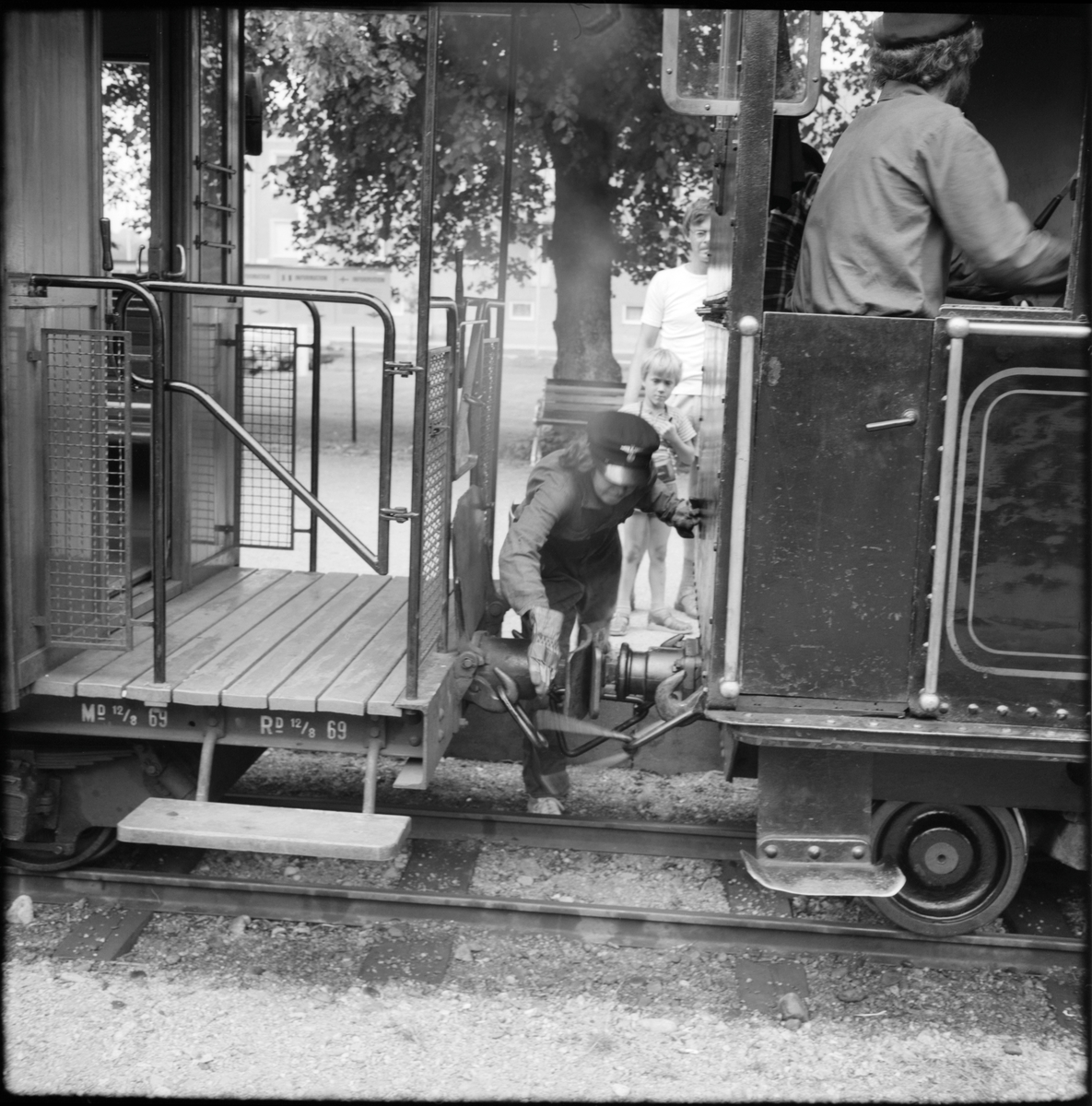 Koppling mellan Museijärnvägen, Östra Södermanlands Järnväg, ÖSlJ ånglok och personvagn.