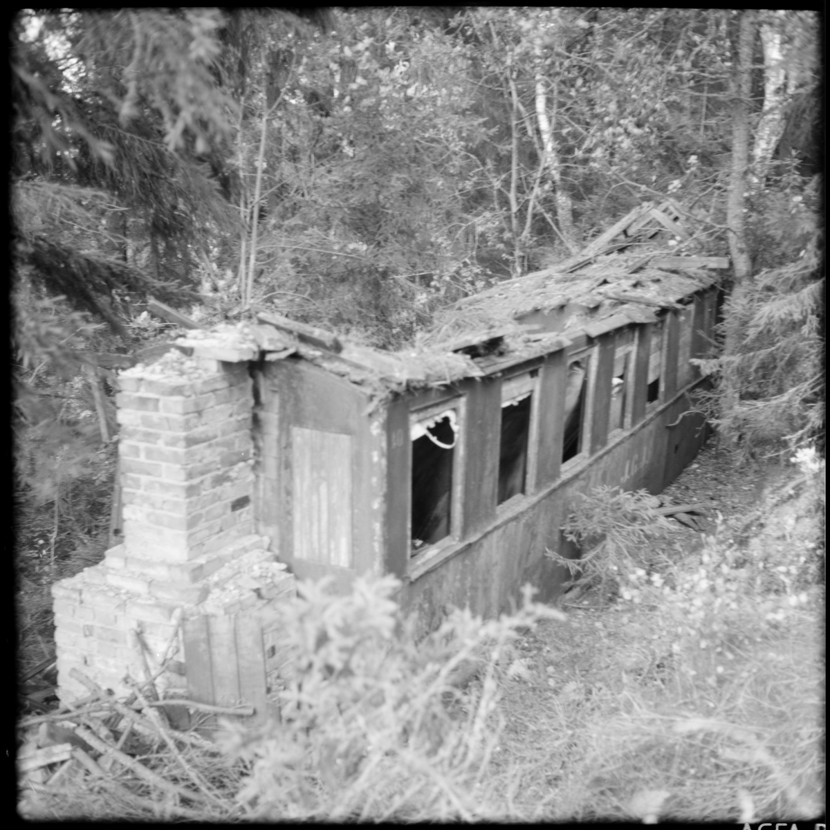 Växande gran och lövträd i Jönköping - Gripenbergs Järnväg, JGJ personvagn 10.