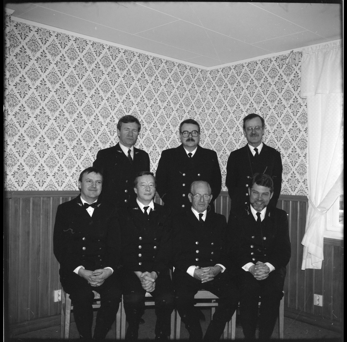 Gruppbild på uniformsklädda män. Troligen styrelsen vid Museijärnvägen, Östra Södermanlands Järnväg, ÖSlJ.