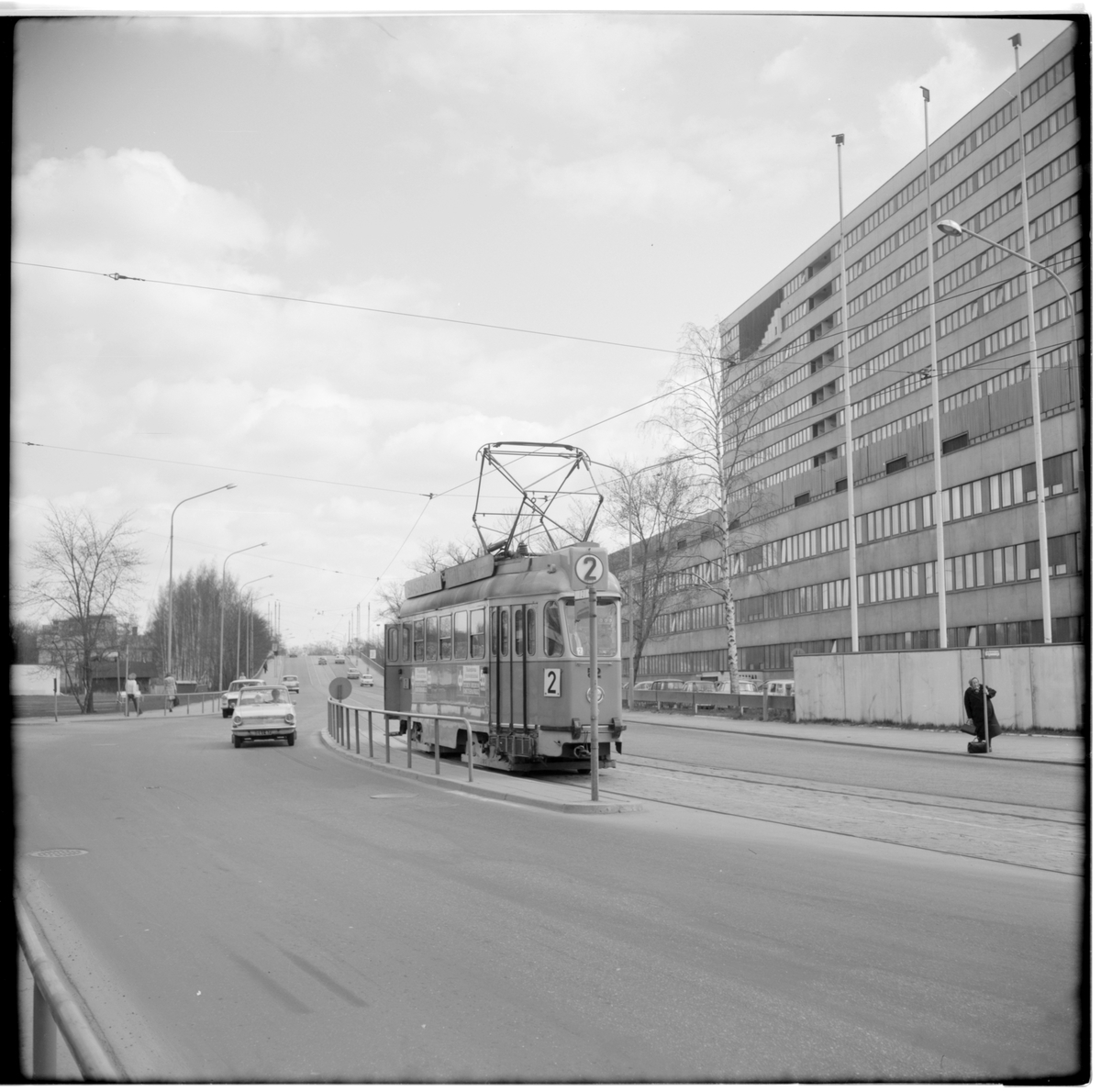 Turun Kaupungin Liikennelaitos, TuKL RM2 52 "spökvagn" linje 2 vid hållplats på Tavastlandsvägen.