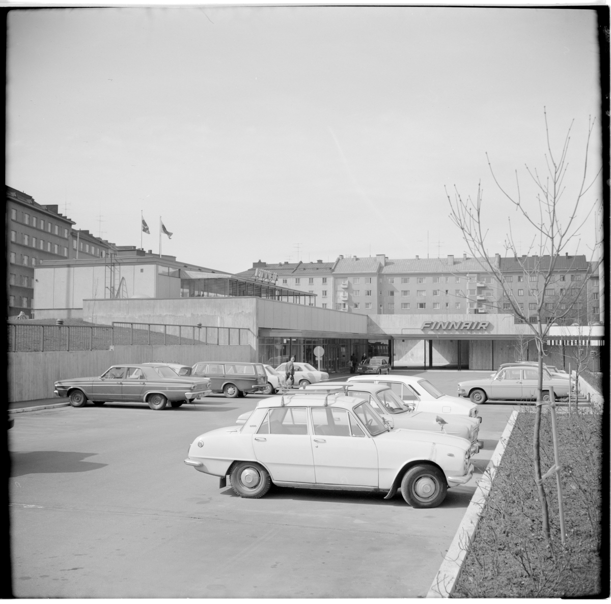 Bilparkering utanför Finnairs citybussar vid deras busstation i Helsingfors centrum.
