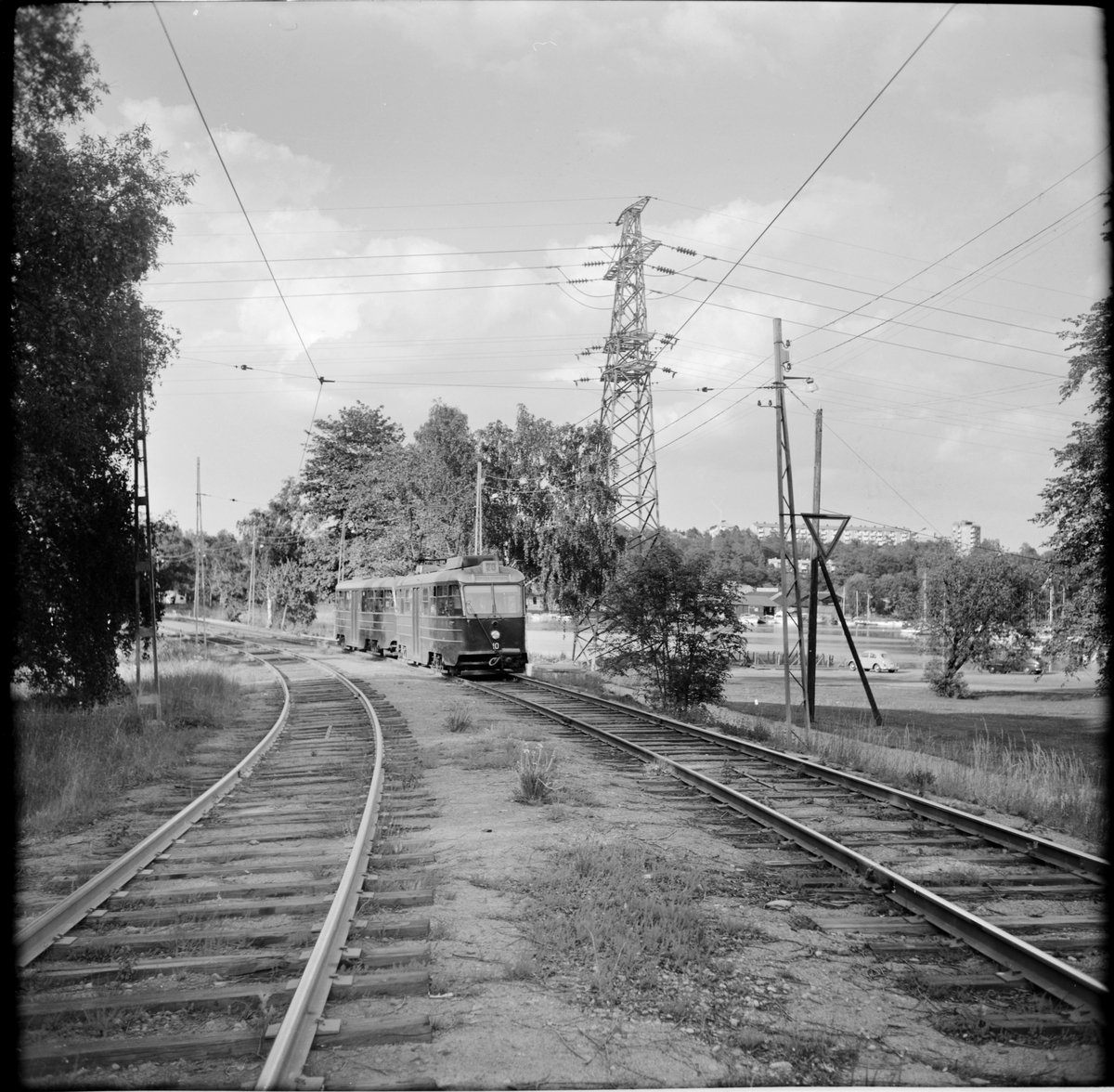 Lidingö Trafik Aktiebolaget, LiB A24(A) 10 "ängbyvagn" linje 20 Ropsten - Kyrkviken i trafik på Klubbvägen.
