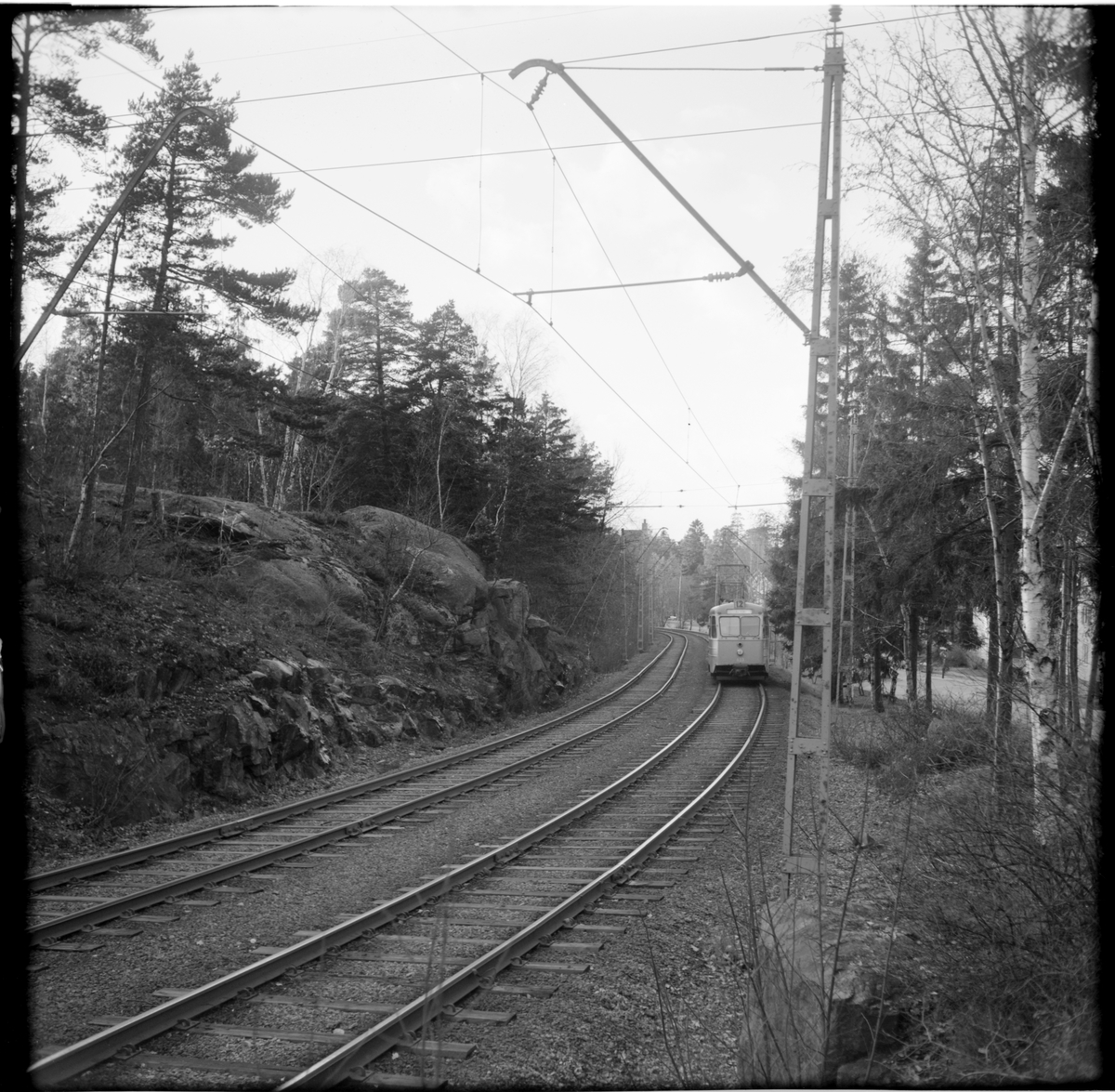 Aktiebolaget Stockholms Spårvägar, SS B24 633 "ängbyvagn" linje 12 Alvik mellan Nockebytorg och Nockeby. Vagn utåt.