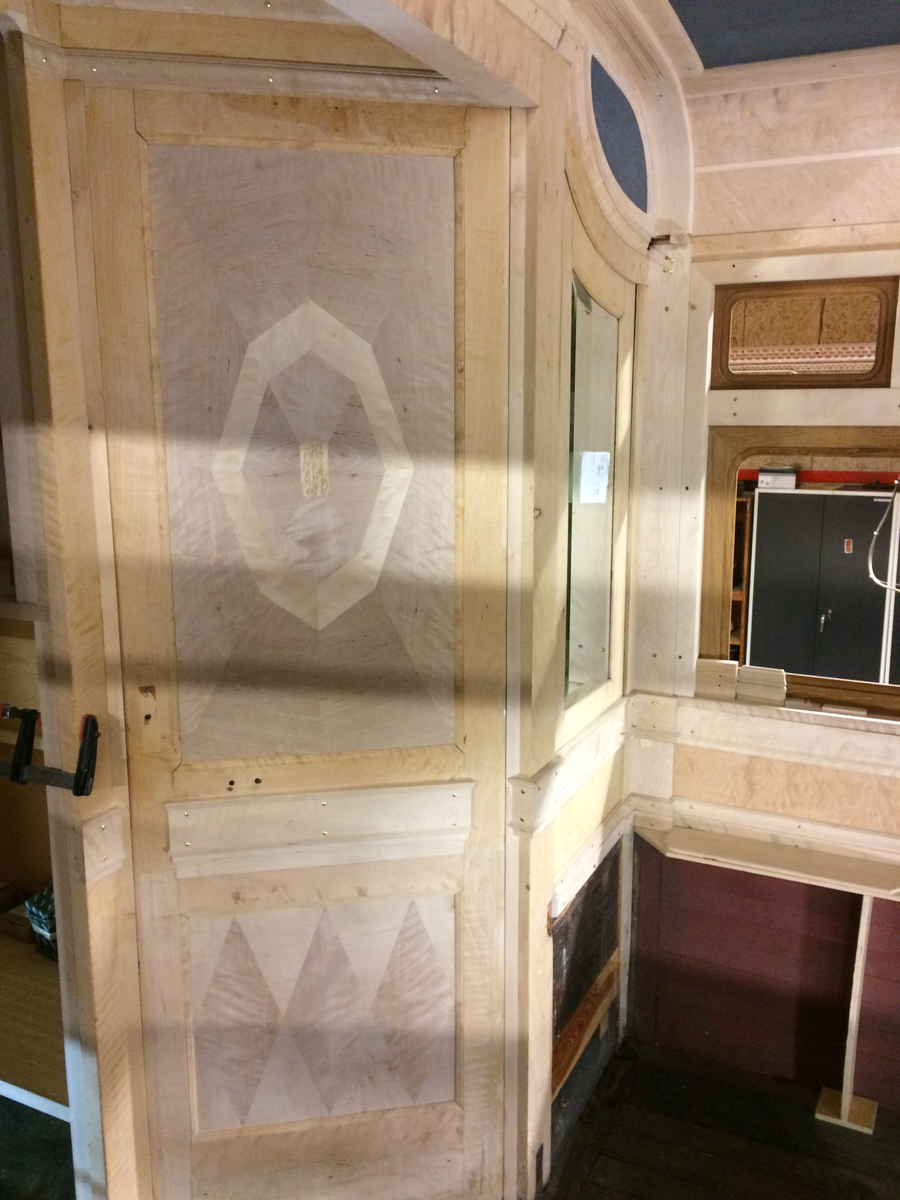 Dörr ut till korridor från matsal. Obehandlad inredning.