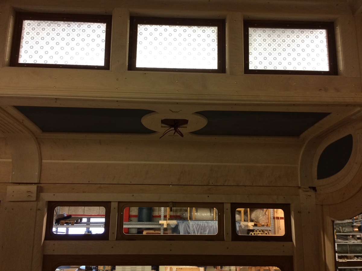 Lanternin med fönster, tak- och vägginredning.